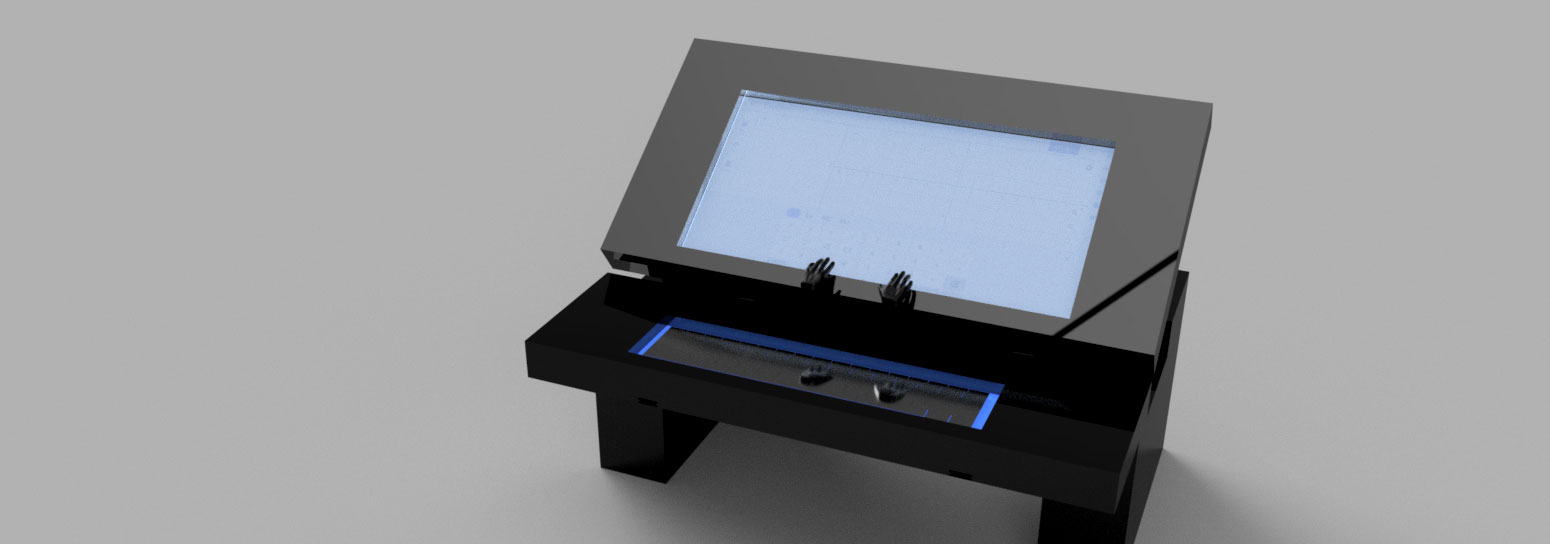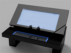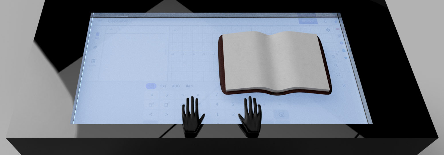 机自体が画面になっている机を作りました。専用の手袋を使って、操作を行い、資料などを見ながら勉強ができたり、机を変形させ、パソコンのような機能を持たせ、動画コンテンツなどを楽しめる様な机を想定して作りました。