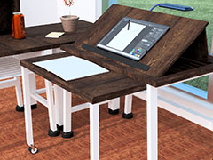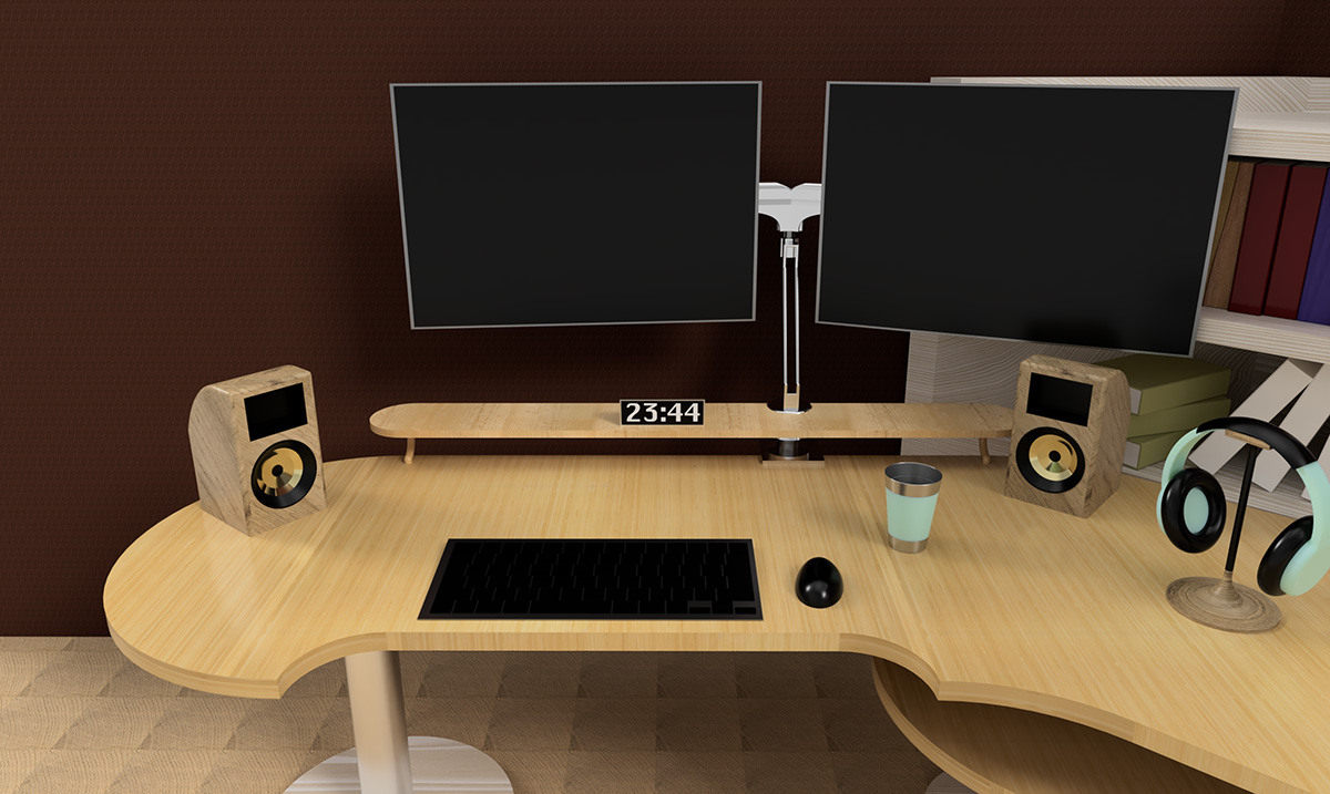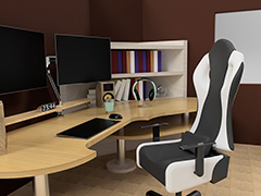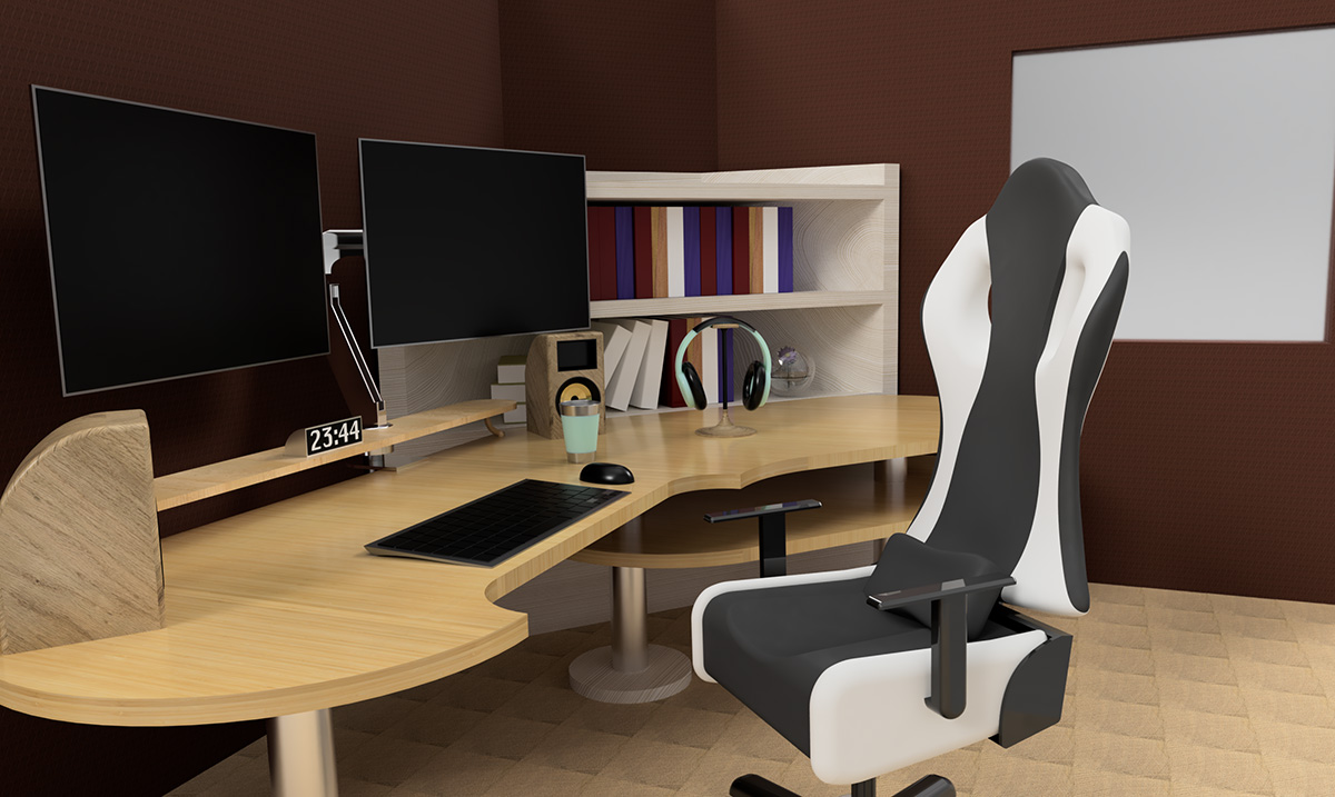 理想の机ということで傾斜のつけられるL字型デスクをモデリングしました!スペースが足りなくなった時用に、キャスターで引き出せるサブスペースも追加しました。