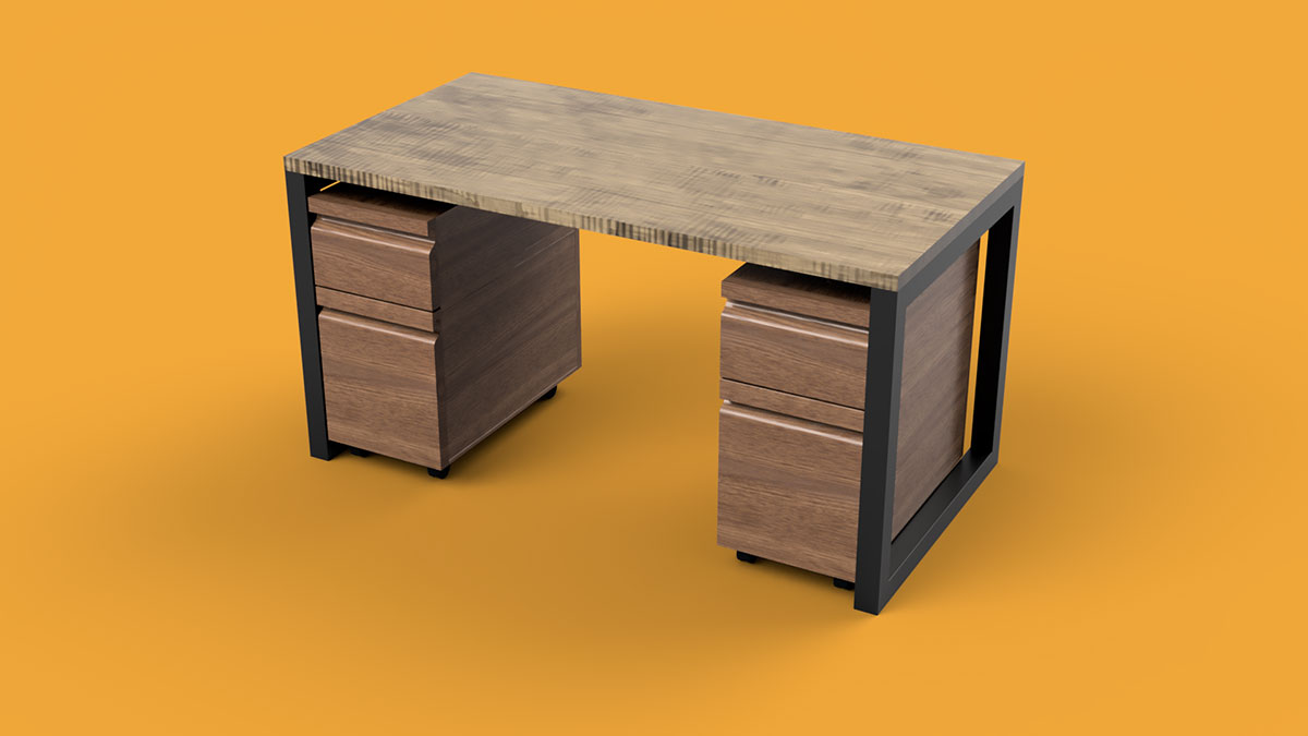 今回は現実でも制作できることを意識した。締結部品を挿入機能を活用し、デスク脚と天板を六角穴付きボルトで固定しするようにした。
