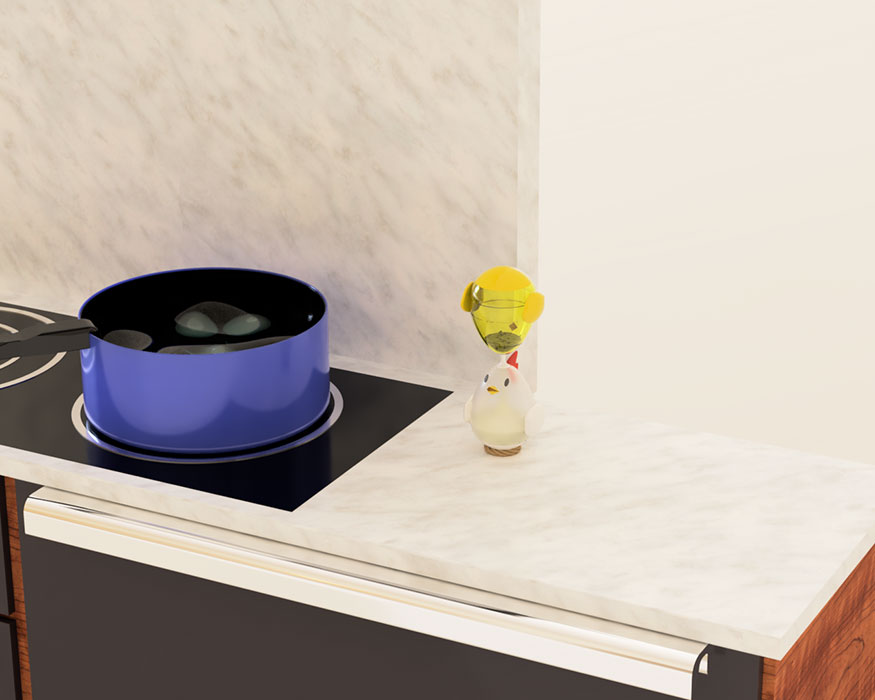 砂時計表面のラインを見ることで何分たったか分かり、好きなゆでたまごの硬さに調整できます。