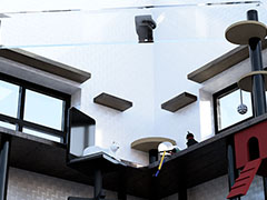キャットタワー付き机は上の部分が透明になっているので猫をしたから見ることができます。