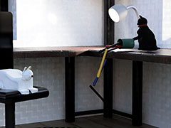 猫は目を離すと悪さをしているときがあるのでそこも表現しました。