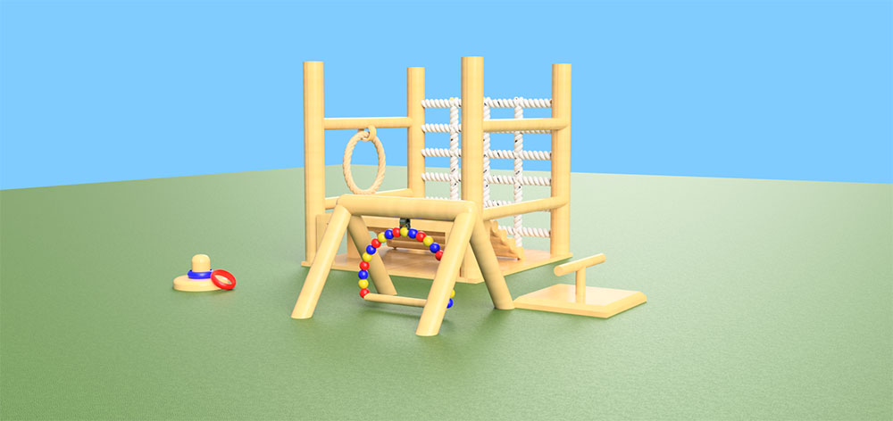 僕が飼っているインコが楽しく遊ぶことを想像しながらモデリングしました。