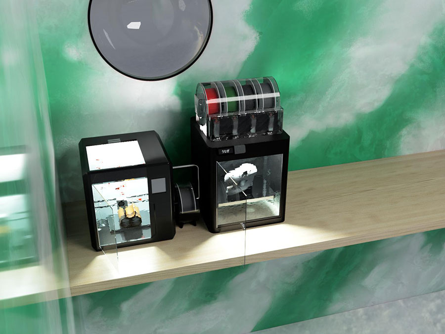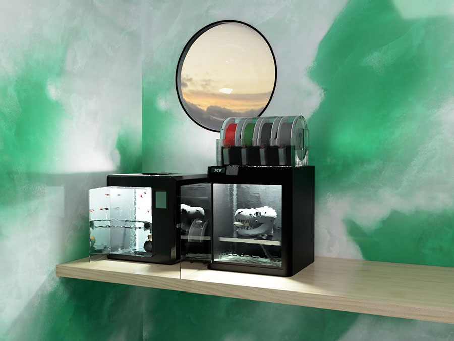 工夫したところはフィラメントの部分がフィルターになっているところや、中に印刷中の物が入ってるところです。