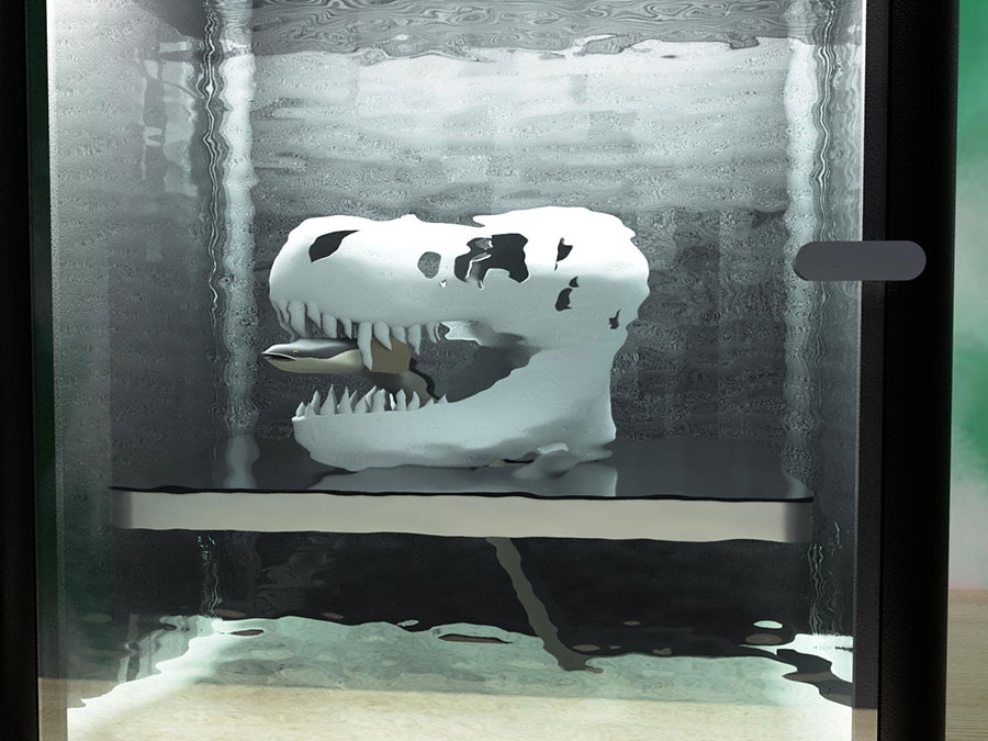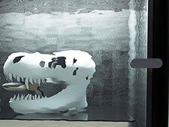 右の方は恐竜の骨の口の中からうなぎが顔をのぞかせています。