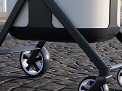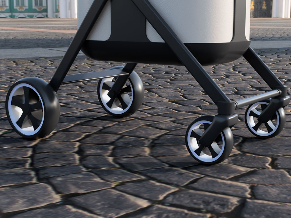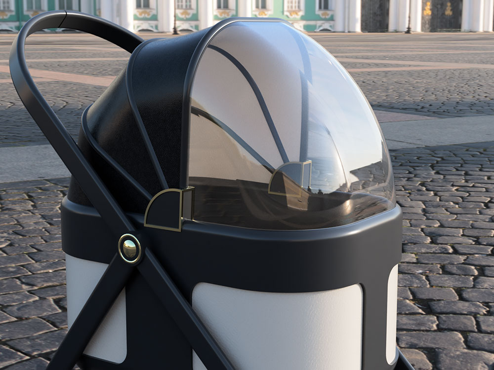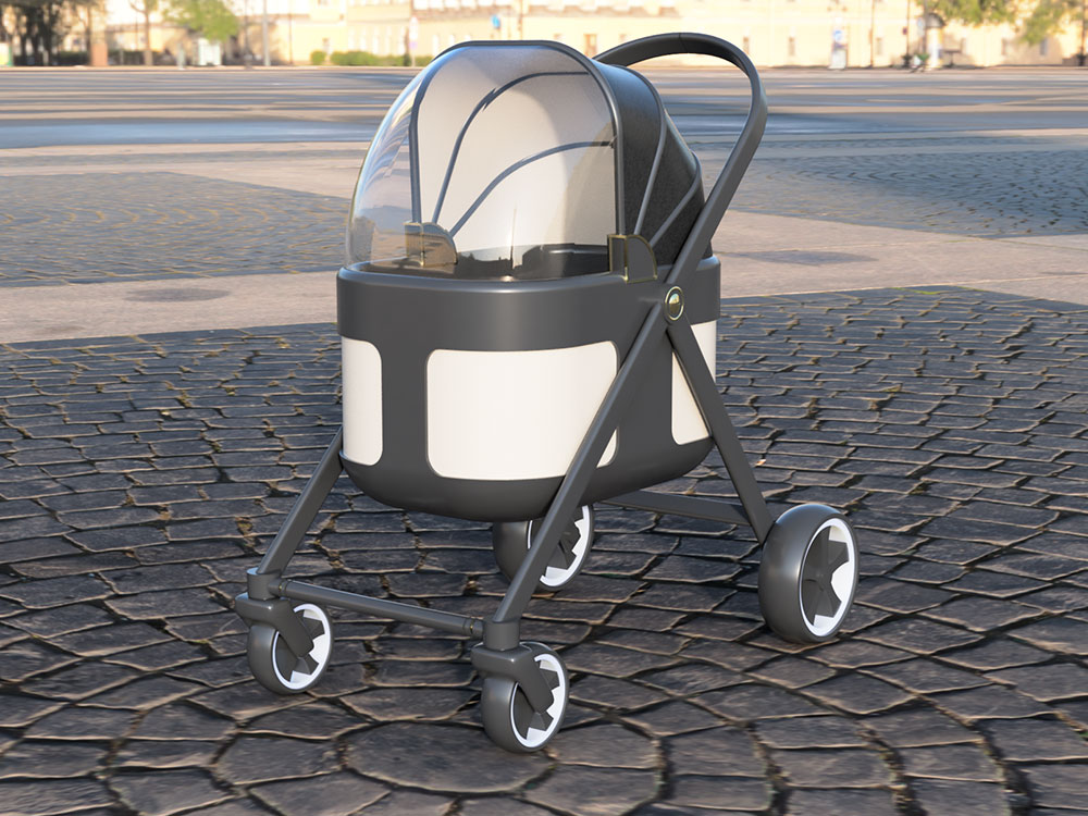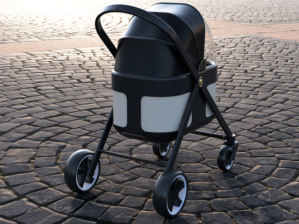 白と黒と部分的な金色を基調に、高級感あるペットカートに仕上がりました。