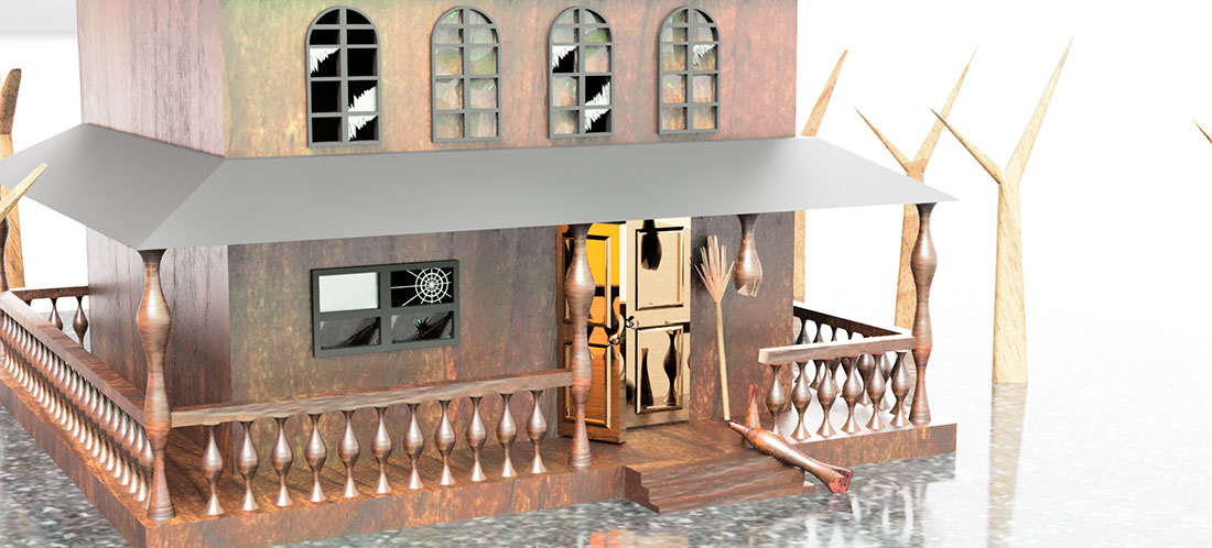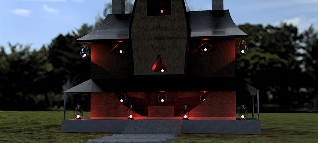 毎年このシーズンになるとあっちこっちで仮装したりコスプレしたりよく見かけますが一度真剣に子供たちを驚かせてみたいと思いお菓子を貰おうと家に来る油断した子供たちに本気のサプライズを仕掛けてべく家ごとホラーなデザインにしてみました。