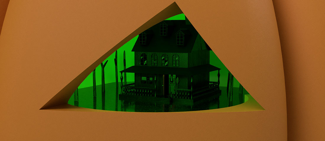 魔女の家がある土地とかぼちゃの目はつながっており自由に行き来できる,という設定を考えて作りました。