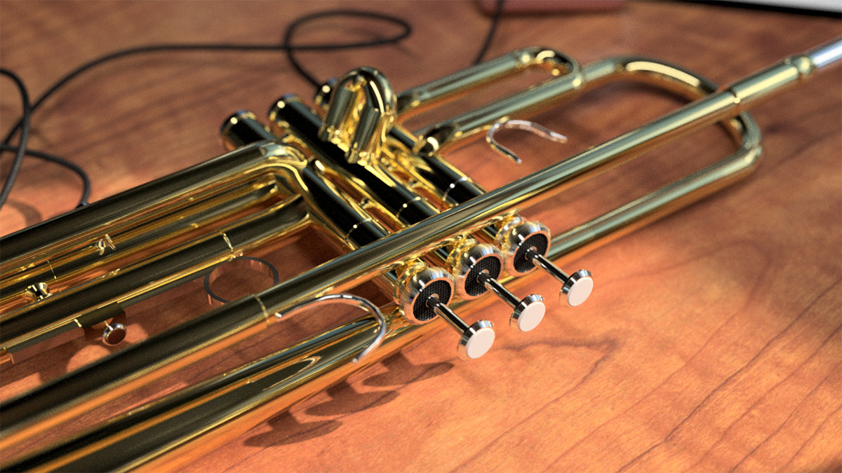 中学生の頃に吹奏楽部でトランペットを担当していた経験をもとに、自分の持っている楽器を参考にしながら制作しました。