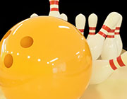 ボーリングの玉が当たってピンが倒れる瞬間をイメージして作りました。ピンが倒れる躍動感が出るようピンの配置を工夫しました。
