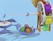 この作品は、観覧車の部分を水車と同じ機構にしてお水を灌ぐことで回転を起こし、その回転軸がそれぞれの曲がりばかさを動かして、コーヒーカップやイルカたちをくるくる回す仕組みとなっています。